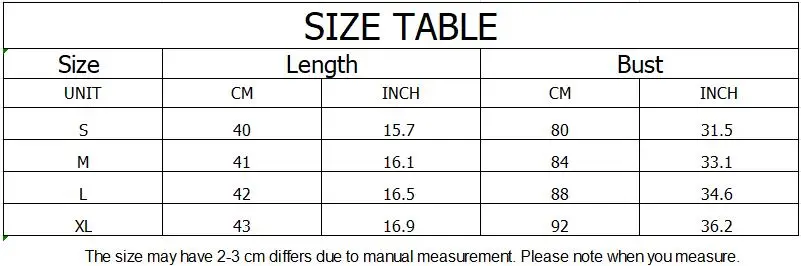 Size | Bust (cm) | Waist (cm) | Hips (cm) |