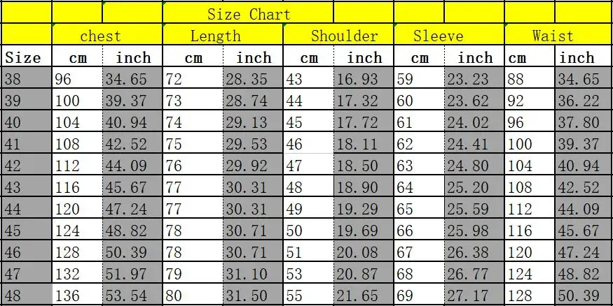 2) Normally, the shirt size should be bigger than your body size. you can check your usual shirt. if your body chest is 100cm, we suggest you choose shirt with 104cm or 108cm.