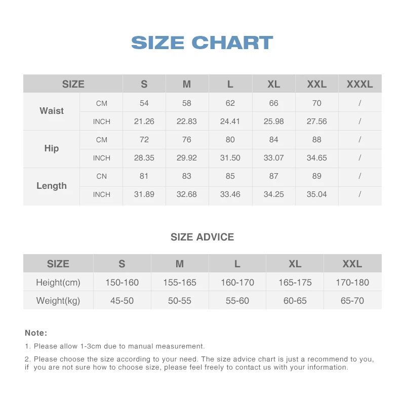Size | Waist (cm) | Hip (cm) | Waist(inch) | Hip (inch) |