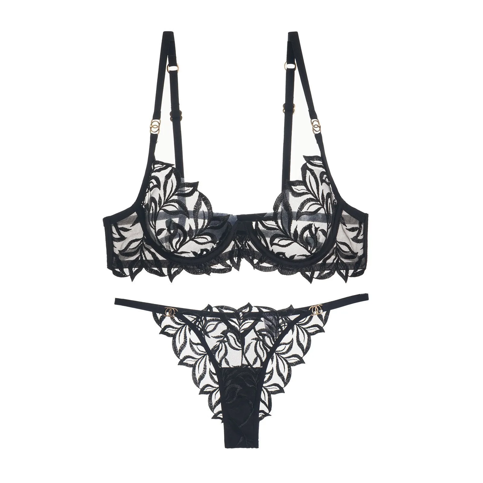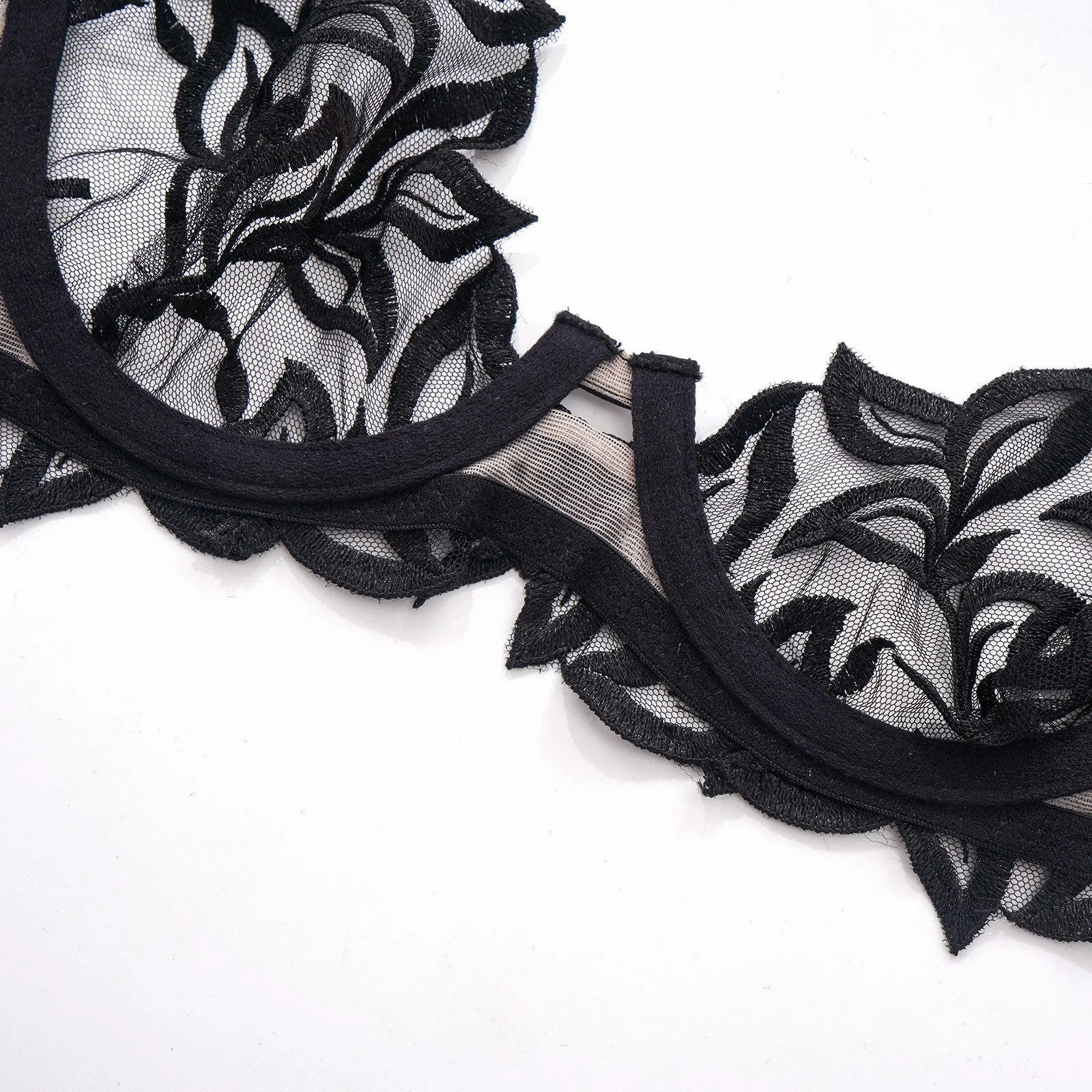 Elevate your intimate wardrobe with this stunning lace lingerie set designed for confidence and comfort. Featuring delicate transparent lace with intricate embroidered details and a flattering hollow-out design, this set combines elegance with allure. The soft, breathable thin cotton blend ensures all-day wearability, while the supportive bra and coordinating T-back brief create a cohesive look. Perfect for special occasions or everyday indulgence, this set celebrates your femininity with thoughtful craftsmanship and refined style.